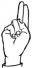 На ћирилици написано ПЕРИША КОЗНИЧАНИН састоји се из 16 слова [?]. Исписано ћириличном једноручном азбуком за глувонеме: